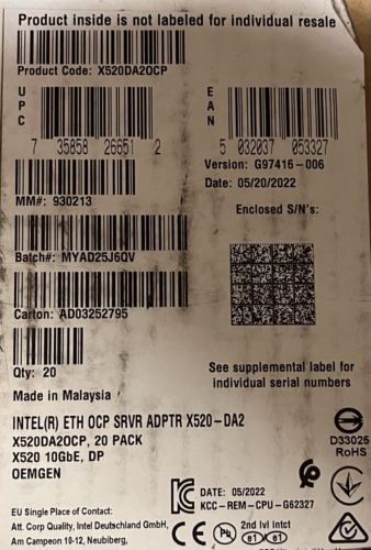 Intel X520DA2OCP X520-DA2 Ethernet Server Adapter NEW BULK PACKAGING